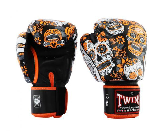Twins Special Fancy FBGVL3-53 SKULL ORANGE/BLACK BOXING GLOVES